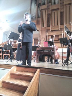 Наши начинающие музыканты 23-ей группы узнали из рассказа Владимира Онуфриева, что в XVII веке, ансамблевым исполнением руководил чаще всего скрипач, который отсчитывал такт ударами смычка или кивками головы. С появлением в XVII веке системы генерал - баса, обязанности дирижёра перешли к музыканту, исполнявшему партию генерал-баса на клавесине или органе; он определял темп рядом аккордов, но мог также делать указания глазами, кивками головы, жестами. Данный способ управления оркестром и было продемонстрировано нам во время исполнения музыки Антонио Вивальди, где Маэстро занял место не за дирижерским пультом, а за клавесином.