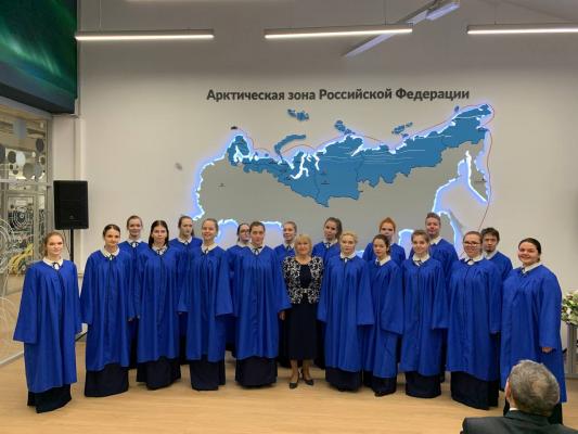 С целью открытия такого праздничного мероприятия, как вручение губернатором Архангельской области А.В. Цыбульским дипломов о присвоении ученых званий, а также благодарностей северянам, внесшим весомый вклад в развитие науки и образования Поморья, был приглашен наш хор 43 группы, чтобы исполнить студенческий гимн «Гаудеамус»
