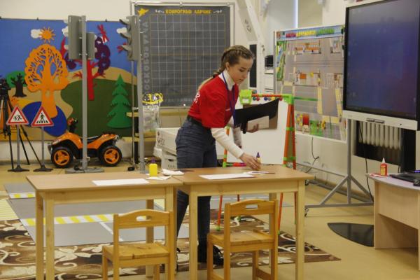 Модуль С – «Организация различных видов деятельности и общения детей дошкольного возраста». В рамках задания по данному модулю участники организовывали руководство свободной совместной деятельностью воспитателя с детьми дошкольного возраста (с элементами самостоятельной деятельности детей). Будущие воспитатели детей дошкольного возраста посредством игры изучали правила дорожного движения.