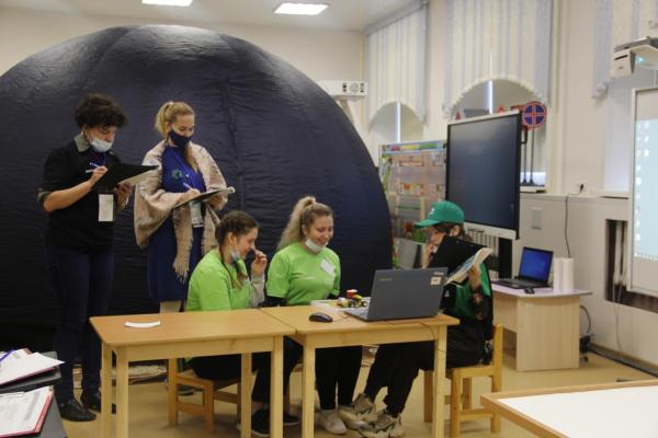 Юниоры в третий конкурсный день выполняли задание модуля А «Обучение и воспитание детей дошкольного возраста». Наши юные участницы разработали и провели интегрированное занятие по познавательному развитию (виртуальная экскурсия в мобильном куполе) на тему «Космос». Эксперты и волонтеры окунулись в мир звезд, спутников и планет!