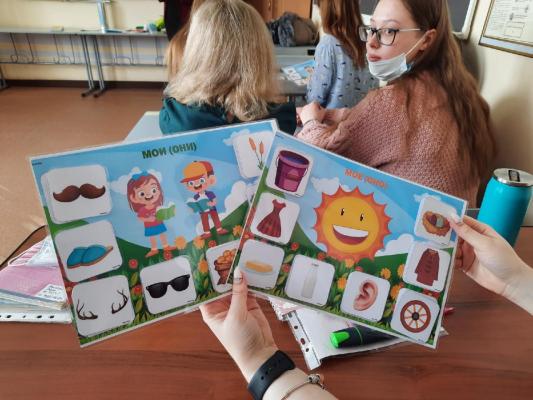 Сегодня нам посчастливилось познакомиться с опытом работы педагогов детского сада № 135 «Дюймовочка» города Архангельска. Анна Владимировна Ссюхина и Екатерина Александровна Мельникова рассказали об своей работе с детьми, имеющими речевые нарушения. И не только рассказали, но и показали, проиграв с нами интересные ситуации.