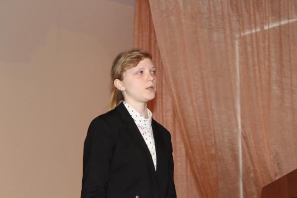 Участники читали стихи О. Фокиной, А.А. Роскова, Г.Н. Рудаковой, О.В. Корзовой. Победителем в данной номинации стала обучающаяся группы 11 (9) Екатерина Зуева, покорившая слушателей чтением стихотворения О. Фокиной «Подснежники».