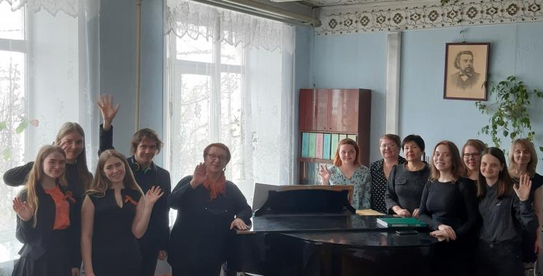 Открытый урок на тему "Контроль триединства - дирижера, хора и концертмейстера за видами ансамбля" провели преподаватели Дымова К.Н и Кудрявцева Н.А. в 23 группе, специальность "Музыкальное образование". Одна из важнейших компетенций будущего специалиста в области музыкального образования - это умение аккомпанировать хоровому коллективу, соединять фактуру произведения с голосом и хором. Наиболее сложным в освоении этими умениями является ансамблевое исполнение. Как проконтролировать соответствие динамики, темпа и исполнительского плана с реальным звучанием в триединстве? На эти сложные вопросы в интерактивной форме отвечали сами студенты. Все занятие было пронизано проблемными вопросами, "профессиональными провокациями" и рефлексией аудитории. Преподаватели использовали нетрадиционные методы работы, например, метод "разрушения" или метод "несогласованности" действий. Занятие получилось живым, эмоциональным, современным, где студенты сами принимали решения, делали выводы, находили неточности и ошибки. Занятие было полностью направлено на формирование профессиональных навыков будущих учителей музыки. Прозвучали произведения песенного жанра "Сон приходит на порог " (муз. И. Дунаевского, сл. В. Лебедева-Кумача) и "Россия" (муз. Д. Тухманова на сл. М. Ножкина). Особенностью этого занятия было то, что в роли концертмейстера выступил студент класса аккомпанемента Н.А. Кудрявцевой Шленская Анастасия, исполнив сложнейший аккомпанемент "России" гибко, профессионально, без ошибок, выполнив все рекомендации педагогов и участвуя в экспериментальных исполнениях фрагментов песен. Желаем дальнейших успехов творческим преподавателям Дымовой Клавдии Николаевне и Кудрявцевой Нэлли Аркадьевне.