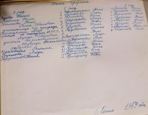 Но были примеры, когда по фотографии можно было узнать много интересного. Вот это снимок выпускниц дошкольного отделения 1959 года (не юбилейного, но это не так важно). Прислала нам его Татьяна Валерьевна Попова (Косова), выпускница музыкально-педагогического отделения 1983 года. Она живет в Северодвинске, работает в школе учителем истории. Она из династии педагогов. Ее мама, Коптяева Виолетта Петровна, в 1959 году окончила дошкольное отделение педучилища, о чем повествует запись на оборотной стороне этой фотографии. Виолетта, имея за плечами подготовку в музыкальной школе и на дошкольном отделении училища, была направлена на работу музыкальным руководителем в детский сад в Маймаксу, а потом уже с семьей переехала в Северодвинск. Сейчас Виолетте Петровне 81 год. Здоровья ей и долголетия. Спасибо за фотографию: за то, что сохранила; за то, что когда-то не поленилась сделать перепись всех тех, кто сфотографировался.