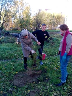 Григорьева Т.С. оценила посадки. Надеемся, что сосны и листопадные кусты приживутся и, весной мы увидим «оживление» нашей территории не крапивой и лопухами, а древесными породами.
