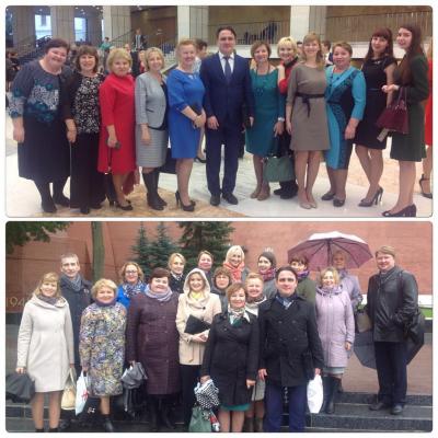 В этот день в Кремлевский дворец были приглашены учителя со всей страны, которые внесли большой вклад в образование и достигли больших успехов в профессии. Они наблюдали за церемонией закрытия Всероссийского конкурса «Учитель года России – 2017», переживали и обсуждали, кто же станет лучшим в этом году. Делегация от Архангельской области состояла из 15 человек – лучших учителей области, победителей и призеров конкурсов профессионального мастерства разных лет, во главе – заместитель министра образования и науки Архангельской области, Ю.А. Гнедышев.