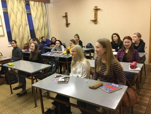 В 1 уч. корпусе желающих было меньше, но вот отважившиеся студенты, которые участвовали в викторине: А. Шамонтьева, гр.24, - 5/6, Богданова П., гр.34, - 4/6, Костылева К., гр.21(9), - 4/6, Шленская А., гр.23, - 3/6, Коротяева Е., гр. 34, - 2/4, Д. Шевченко, гр.21, - 2/6, группа 21(9) ответила на 5/6 вопросов, отличившимися стали Жилина П., Сокол О., Лепёхина В., Костомаха Л. Вопросы викторины подготовили участники студенческого научного общества естественно-научной секции Оснач Екатерина и Пигасова Елизавета из группы 21(9).