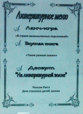 Присутствуя на «Литературное кафе», я была очень удивлена тому, что после показа очередной очень известной книги «Дом странных детей: роман» (Ренсом Риггз), у всех, кто не читал этого произведения, появилось невероятное желание взять и прочитать это произведение. Но это ещё не всё. Нам включили небольшой отрывок из фильма «Дом странных детей мисс Перегрин» Тима Бёртона, который был снят на основе этой книги. Во время просмотра отрывка из фильма, мы пили чай с пряниками и конфетами. И на этой сладкой ноте закончилась наша очередная приятная встреча в «Литературном кафе».
