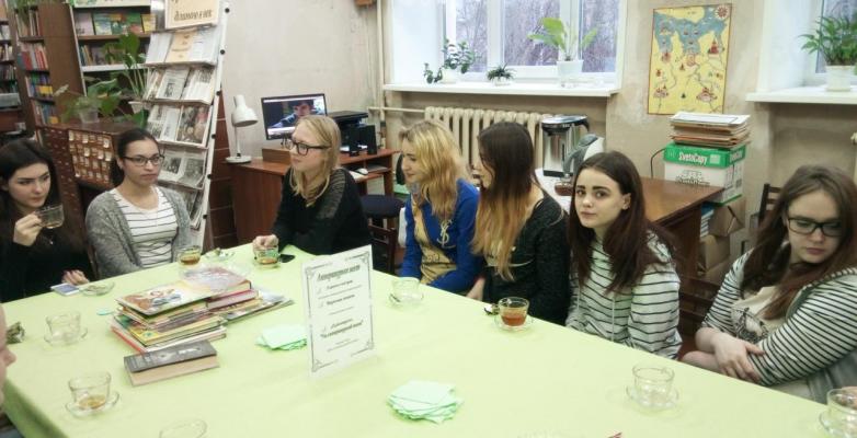 И вот, группа 4(9) снова стала участником «Литературного кафе», которое проходило в библиотеке нашего педагогического колледжа корпуса №1.