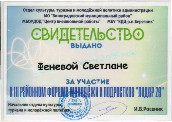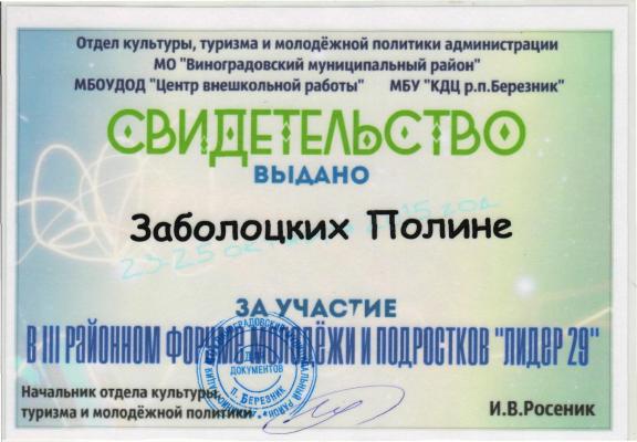 С 23 по 25 октября 2015 года в посёлке Двинской Березник состоялся III районный форум «Лидер 29». Организовали для нас этот прекрасный форум отдел культуры, туризма и молодёжной политики администрации МО «Виноградовский муниципальный район», МБОУДОД «Центр внешкольной работы», МБУ «КДЦ р.п. Березник»