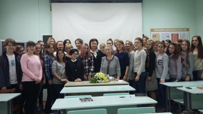 13 октября в группе 1(9) состоялся классный час, посвященный столетию преподавателя колледжа, а ныне ветерана Родиной Веры Алексеевны. Абрамова Светлана студентка группы №23 рассказала о жизни и карьере Веры Алексеевны. Гостьей классного часа стала ветеран колледжа Уемлянина Маргарита Григорьевна, которой довелось быть сначала ученицей Веры Алексеевны, а затем и коллегой. Из первых уст мы узнали об интересных фактах из личной и профессиональной жизни Веры Алексеевны, о ее непростой и наполненной событиями судьбе. Познакомились с книгой, изданной сыном Веры Алексеевны, по ее записям и воспоминаниям.
