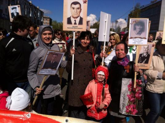 «Бессмертный полк» - международная общественная акция, проводящаяся в России и ряде стран ближнего и дальнего зарубежья в День Победы, в ходе которой участники идут колонной и несут транспаранты с фотопортретами своих родственников, участвовавших в Великой Отечественной войне.