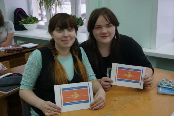 4. Студентки 11 группы Сысоева Алина и Раздобурдина Полина, помощники организатора