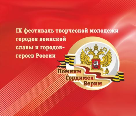 В городе Архангельске с 18 по 21 февраля 2019 года пройдёт IХ фестиваль творческой молодежи городов воинской славы и городов-героев России "Помним. Гордимся. Верим". Все конкурсы объединены темой "Города, города, вас в России не счесть, вы – опора страны, ее доблесть и честь".