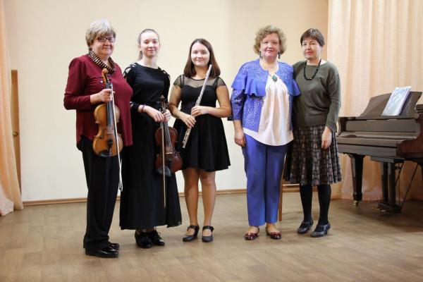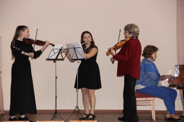 Необычен концерт еще и тем, что в нем звучала музыка, столь редко исполняемая на этой сцене, а именно инструментальная музыка для флейты, исполняемая студенткой второго курса музыкального колледжа Кириченко Юлией и для скрипки, исполняемой ученицей 6 класса ДМШ № 3 г. Северодвинска Варварой Кармановской. Кроме того в концерте звучали пьесы для ансамбля флейты, скрипки и фортепиано. Концертмейстер этого маленького коллектива Кириченко Наталья Валерьевна была просто великолепна, настолько тонко она чувствовала юных исполнителей.