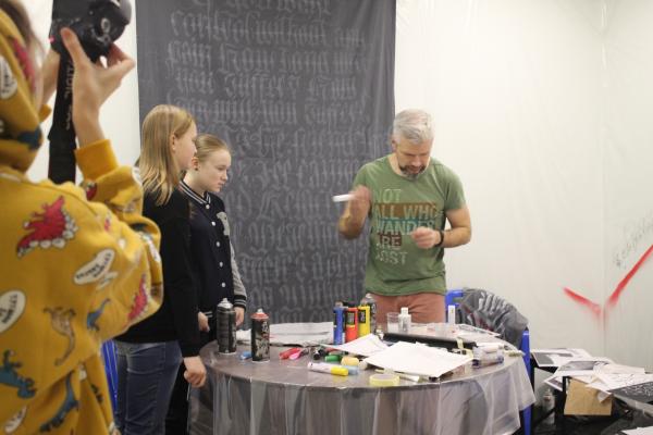 В «Поморской АРТели» одним из ярких мероприятий стал мастер-класс по оформлению одежды каллиграфией, который провел преподаватель колледжа Кирилл Альбертович Старицын. Создать непредсказуемые шедевры на одежде решили и студенты нашего образовательного учреждения, которые тоже стали участниками мастер-класса.