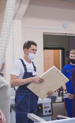 Благодаря областному финансированию был проведён ремонт мастерских и закуплено необходимое оборудование (станки, ручной деревообрабатывающий инструмент), которое позволит обучать наших ребят на уровне международных стандартов деревообработки и производства мебели. Гостям рассказали о каждом станке, показали его в работе. Стоит отметить, что мастерская «Плотницкое дело» была создана для организации тренировочного процесса членов национальной сборной и наших ребят при подготовке к чемпионатам Worldskills.