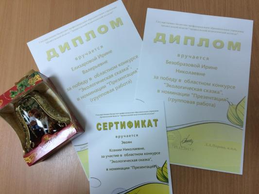 Совсем скоро наступят новогодние праздники – дни, когда мы дарим и получаем подарки: сласти, сувениры, а кто-то и что-то посерьёзнее! Как, например, Безобразова Ирина Николаевна и Елизарова Ирина Валерьевна – студентки групп 64(2) и 64(3) соответственно. Они подарили себе ПОБЕДУ: выпускницы-2018 заочного отделения стали лидерами областного конкурса «Экологическая сказка» в номинации «Презентация»!