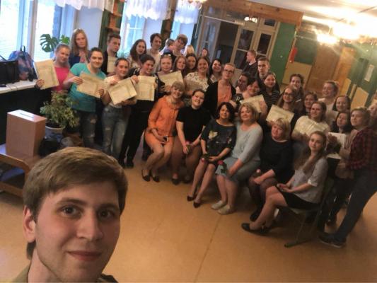 21 мая 2018 г. во втором корпусе ГБПОУ АО «Архангельский педагогический колледж» была завершена апробация программы профессионального обучения по должности служащего Вожатый (КПО Вожатый), которая явилась результатом сотрудничества ГАУ АО «Штаб молодежных трудовых отрядов Архангельской области» и отдела ДПО ГБПОУ АО «Архангельский педагогический колледж». В обучении приняли участие 62 человека (СПО и ВПО г.г. Архангельска и Северодвинска), среди них 16 - студенты АПК. В программу подготовки (260 ч.) было включено дистанционное обучение (в объеме 183 ч.) и очное обучение (77 ч.) Очному обучению были отведены дисциплины по оказанию первой помощи пострадавшим, безопасности жизнедеятельности воспитанников, выполнению работ по должности вожатого в учреждениях отдыха и оздоровления детей, учебная и производственная практика. После завершения обучения будущие вожатые сдавали демонстрационный экзамен, члены государственной экзаменационной комиссии (ГЭК) (Т.Н.Гурьева, директор по развитию ООО «Туркомпания «Сказка Странствий»; В.Р.Соболев, и.о.директора ГАУ АО «Штаб молодежных трудовых отрядов Архангельской, области»; преподаватели: О.В. Батина, И.А. Гечу, М.А. Шитикова, имеющие опыт работы от вожатого до начальника детского лагеря, прошедшие курсы повышения квалификации по программе «Технологии эффективного управления организацией смен в системе отдыха и оздоровления детей и молодёжи РФ» в ГБПОУ г. Москвы «Воробьёвы горы») оценивали освоение профессиональных компетенций: 56% - «ОТЛИЧНО», 42% - «ХОРОШО», 2% - «УДОВЛЕТВОРИТЕЛЬНО». На завершающем этапе выпускникам были выданы свидетельства государственного образца о прохождении КПО «Вожатый».
