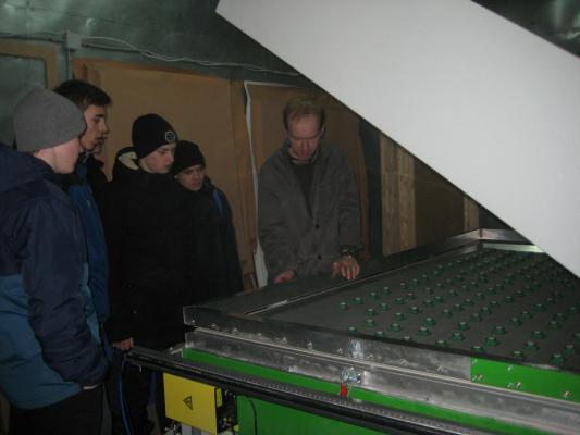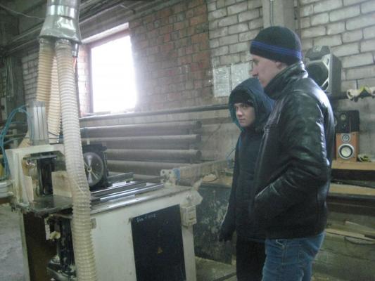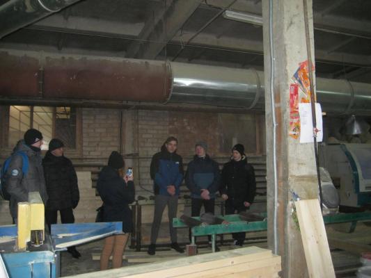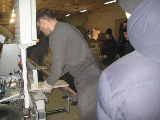Обучающиеся группы 1М посетили предприятия Исакогорского промузла. Ребята познакомились с технологией обработки пиломатериалов для изготовления клеёного бруса. Работники мебельного цеха показали студентам, как в вакуумном прессе облицовываются синтетическими пленками пласти фасадов и как работает кромкооблицовочный станок проходного типа.