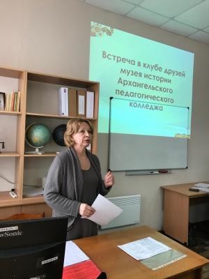 - – Надежда Константиновна Волкова открывает встречу друзей музея колледжа;