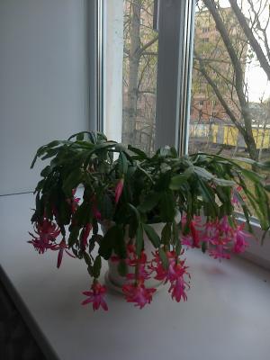 Вам её не хватает? Приходите на второй этаж первого корпуса АПК, туда, где расположены кабинеты заочного отделения. Приходите и посмотрите на распустившегося «декабриста»! Сочетание глубоко зелёного и переливчатого розового цветов не оставят вас равнодушными.