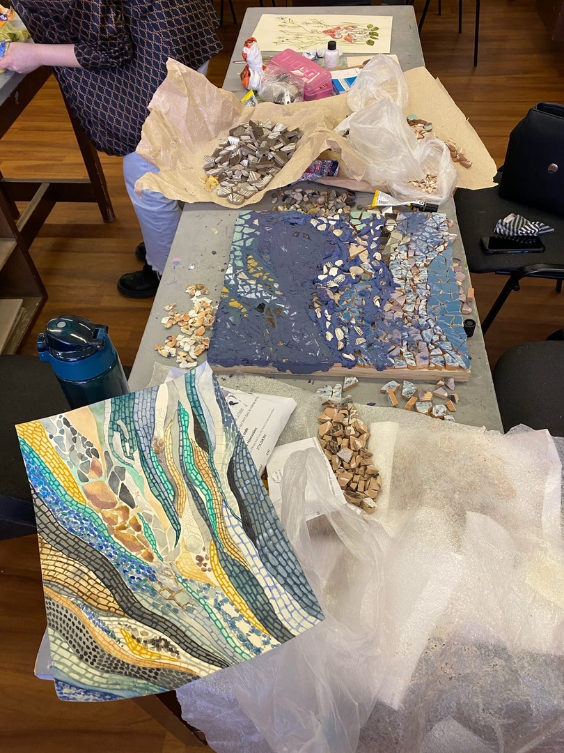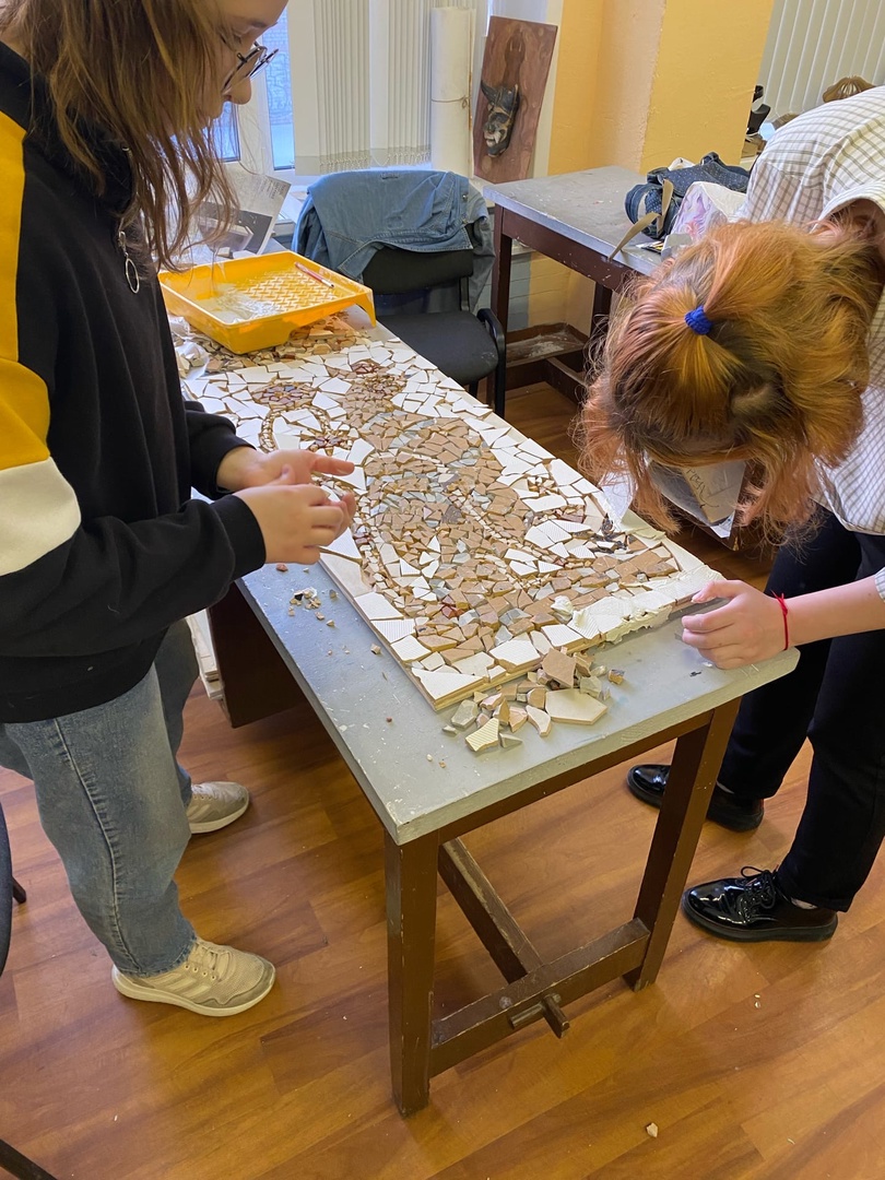 Подошла к завершению учебная практика ПМ 03 «Выполнение оформительских работ» в группе 3И исполнителей художественно-оформительских работ. В течении четырех недель студенты выполняли творческие работы в технике «батик», выполняя роспись на элементах одежды и ткани, натянутой на подрамник; в технике «мозаика», составляя композиции из кусочков керамической плитки. Попробовали рисовать акриловыми красками по стеклу в технике «витраж» с нанесением краски на просвет и непрозрачным плотным слоем. На дифференцированный зачет студенты представляли портфолио с фотографиями своих работ, выполняемых в течении учебного года.