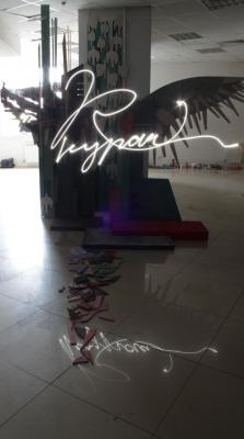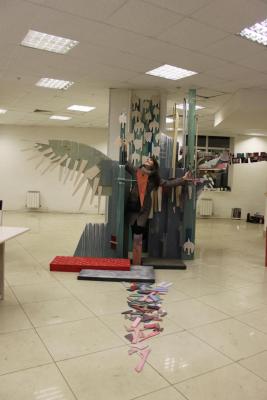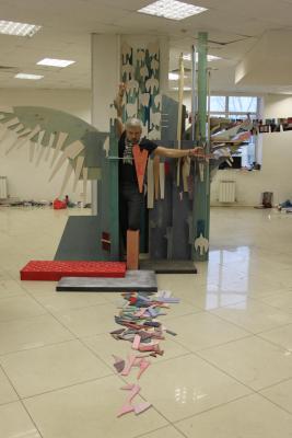 На глазах посетителей из кусков фанеры была создана активная фотозона, в которой каждый фотографирующийся становится участником перфоманса, становясь частью художественного объекта.