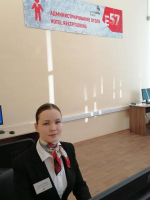 Студенты по специальности «Туризм» Ульяна Гузенко и Анастасия Волкова представляют колледж по компетенции «Администрирование отеля». Конкурсное задание по этой компетенции имеет модульную структуру. Каждый модуль состоит из определенного количества заданий, которые, в свою очередь, скомпонованы таким образом, чтобы максимально приближенно и естественно моделировать рабочий день сотрудника службы приема и размещения гостей. Ульяна и Анастасия, конечно же, волнуются, задания выполняют сосредоточенно.