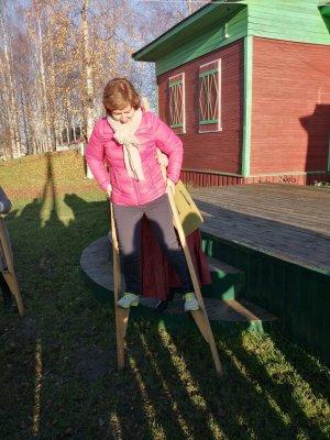 Наше путешествие подходило к концу. Неожиданно экскурсовод предложила нам принять участие в старинных поморских забавах. Мы все качались на карусели «Гигантские шаги», а наиболее смелые учились передвигаться на ходулях!