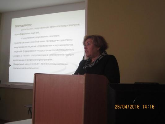 Матвеева Г.Н., начальник отдела лицензирования, государственной аккредитации и подтверждения документов управления надзора в сфере образования министерства образования и науки Архангельской области – о результатах лицензионного контроля государственных профессиональных образовательных организаций Архангельской области.