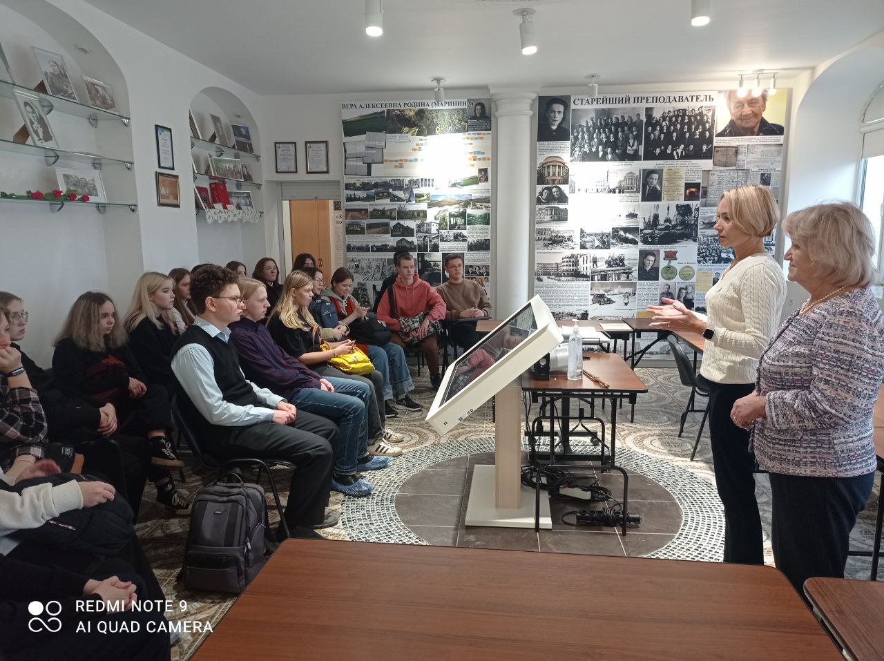Школьников познакомили с историей колледжа, со знаковыми людьми, с достижениями. Об этом ученики узнали от Гороховой Людмилы Сергеевны.