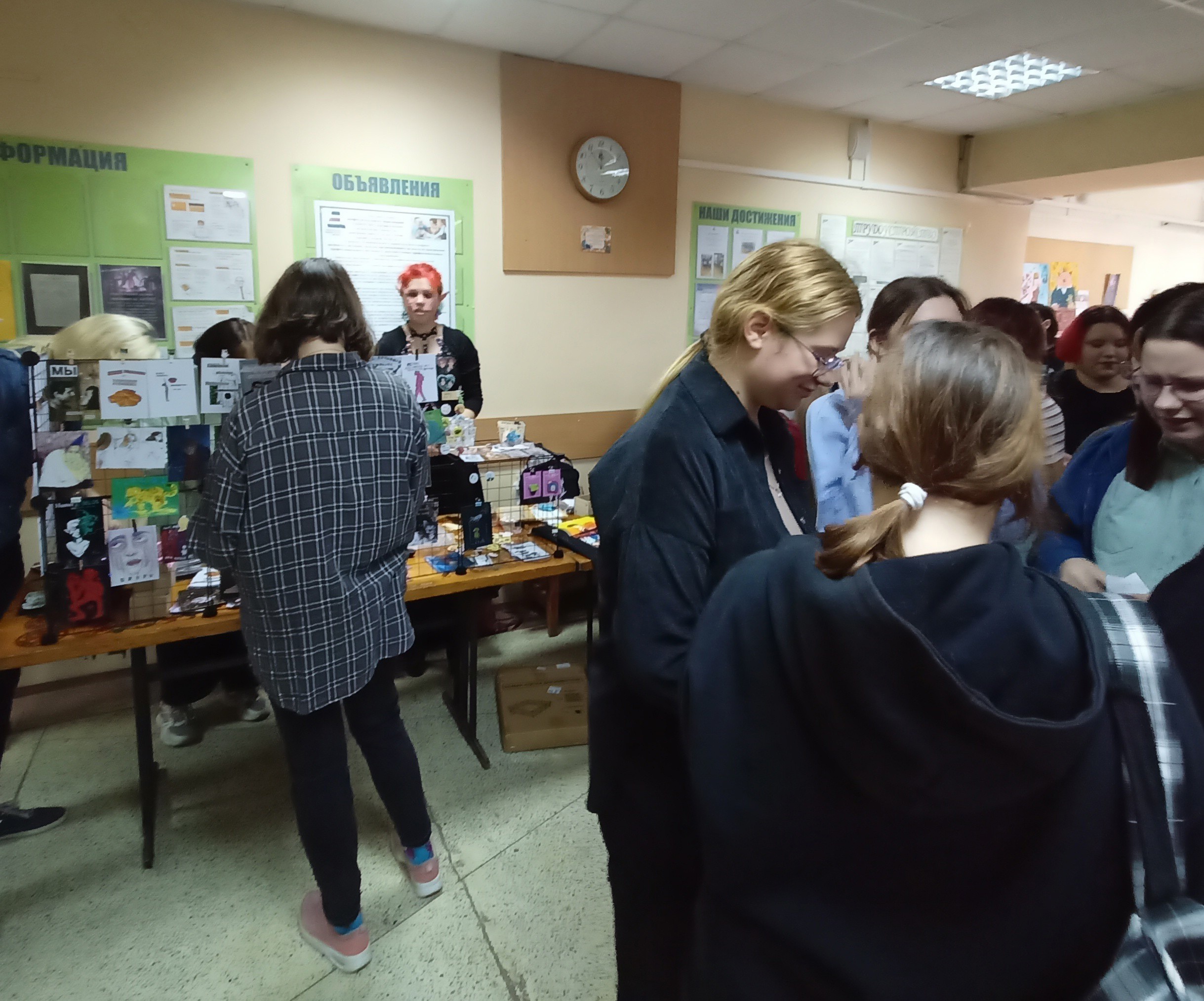 1 ноября 2022 года в фойе второго корпуса Архангельского педагогического колледжа было особенно оживлённо: всё дело в том, что там проходила ярмарка. Студенты 1 и 2 корпуса создали своими руками много различных предметов, это были и серьги, и колечки из бисера, кексики, картины, наклейки, значки, открытки и многое другое. На ярмарке было шумно и весело: громко играла музыка, а студенты с волнением узнавали стоимость товаров. Также проводилась лотерея, где можно было выиграть 100, 200 или 300 рублей на товары ярмарки. В общем, мероприятие прошло ярко, шумно и разбавило привычные будни студентов.